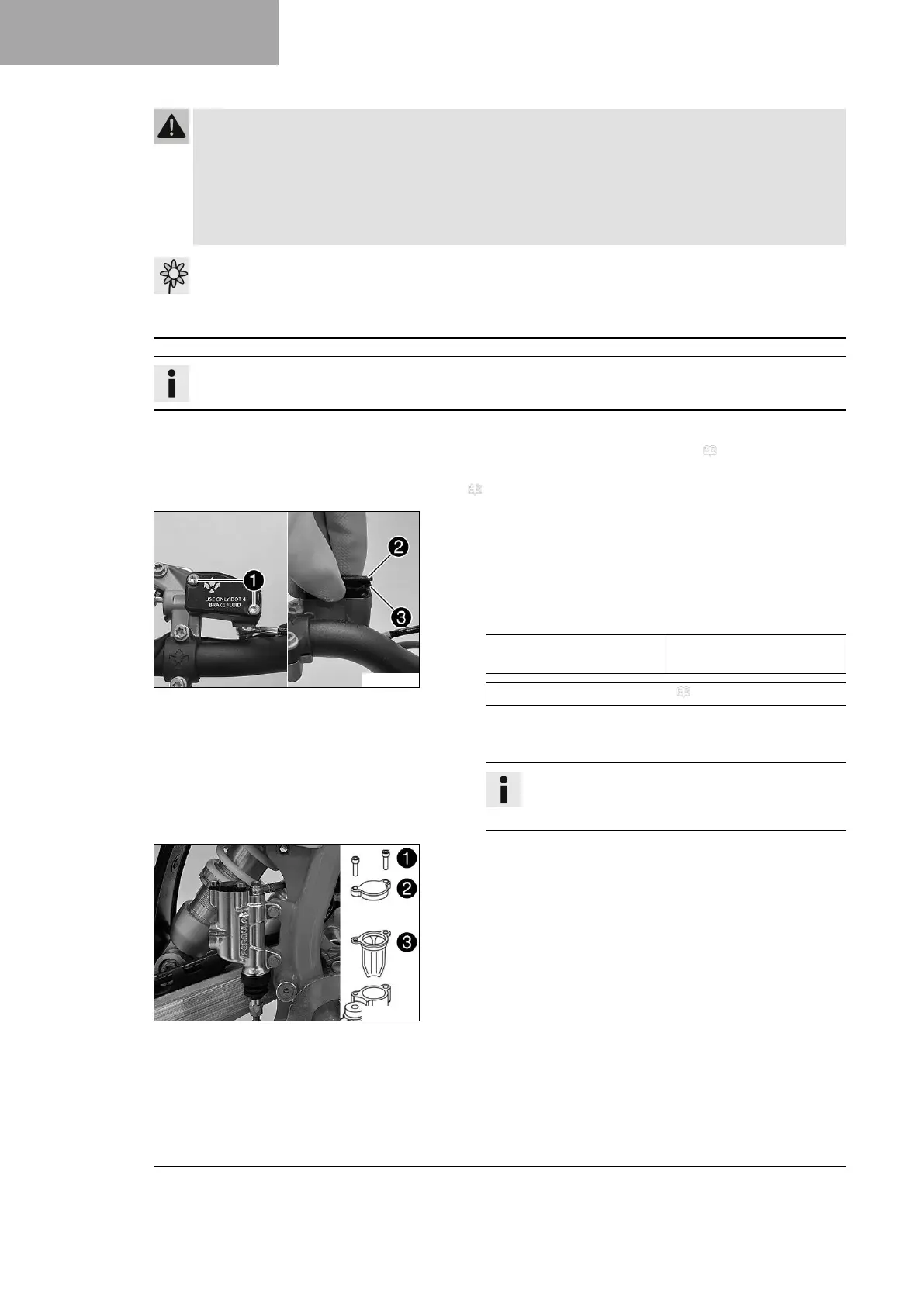 – Make sure that brake fluid for the front and rear brake is changed in accordance with the service