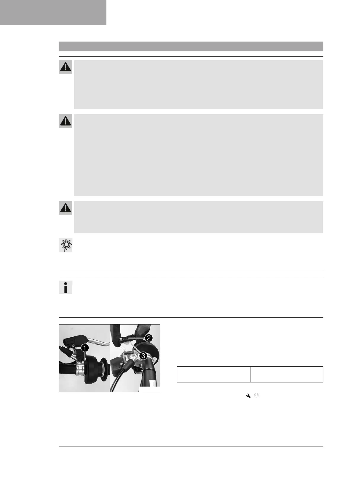 – Check the brake system and do not continue riding until the problem is eliminated. (Your authorized