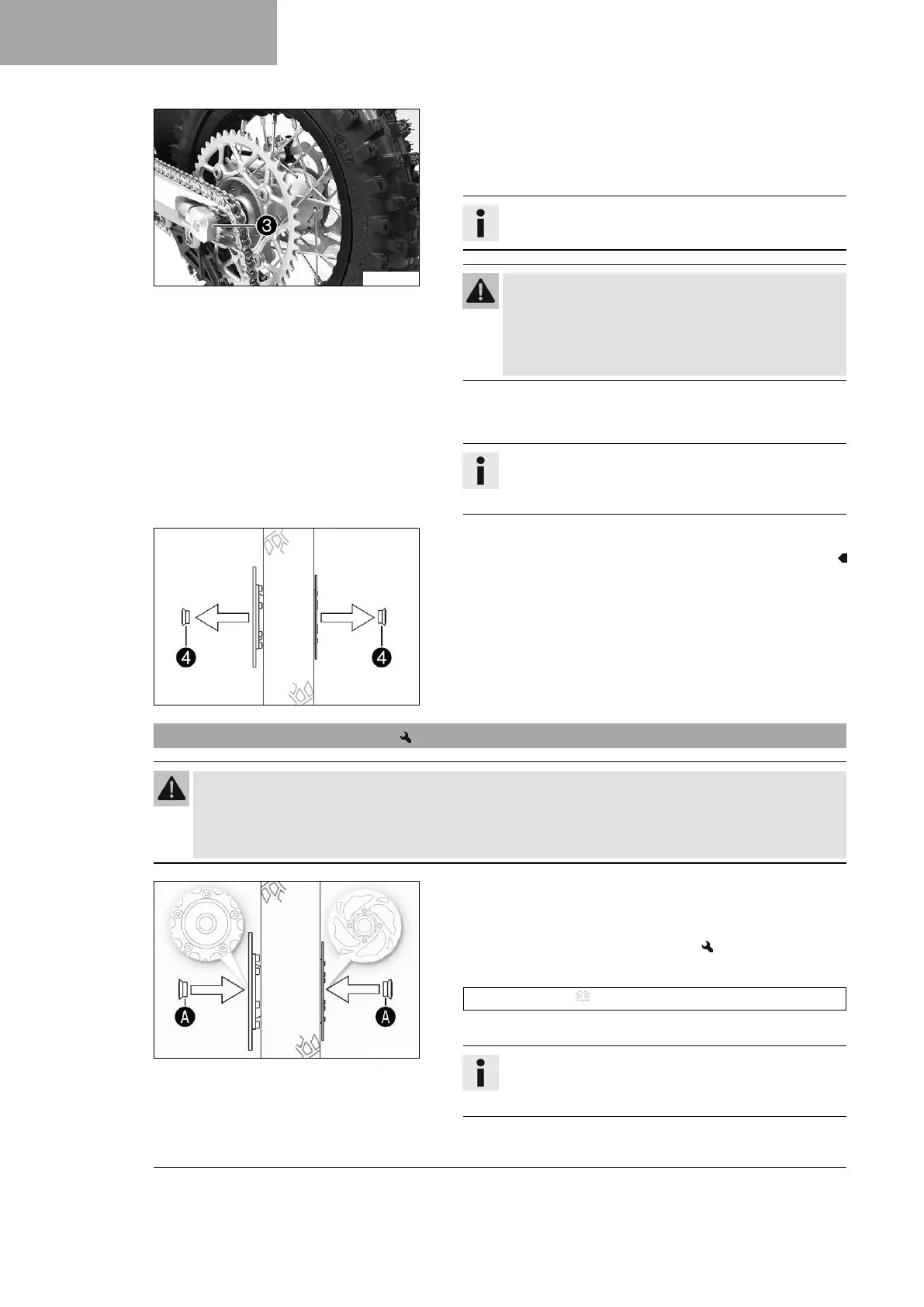 – Hold the rear wheel and remove the wheel spindle. Take the