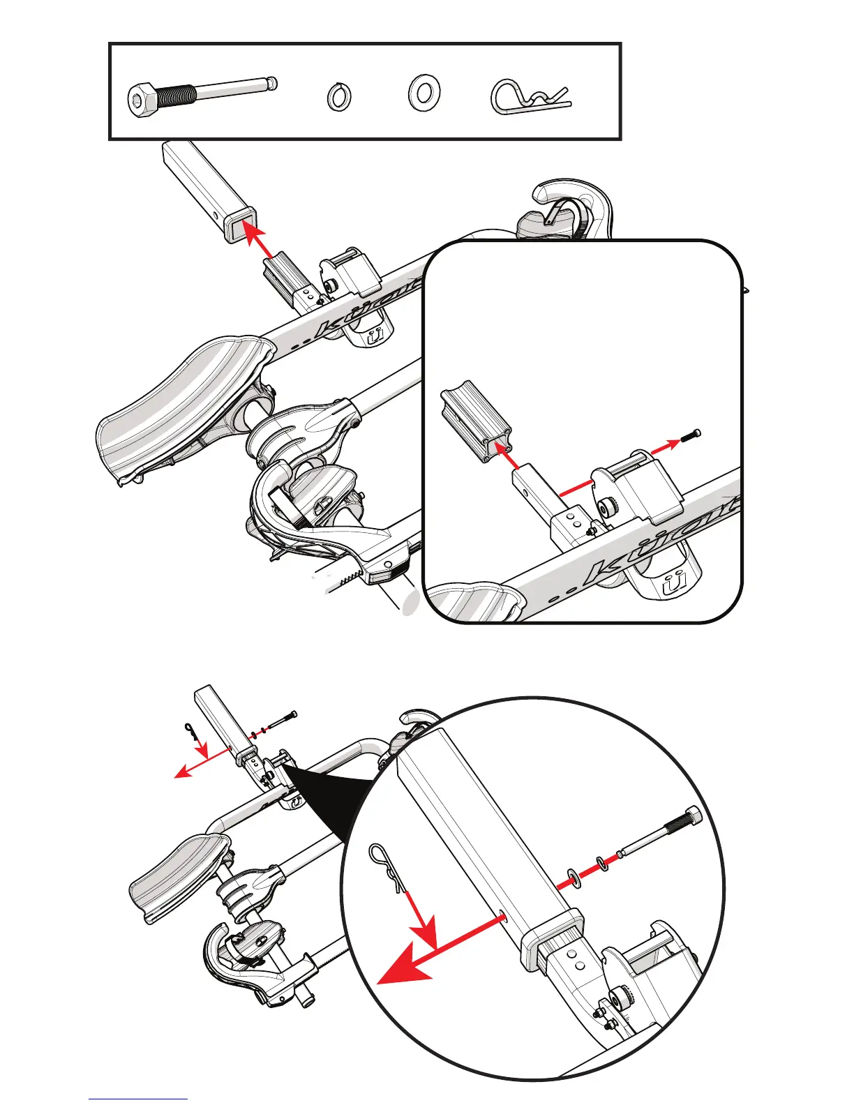 Thread the hitch bolt with washers into the hitch, secure bolt