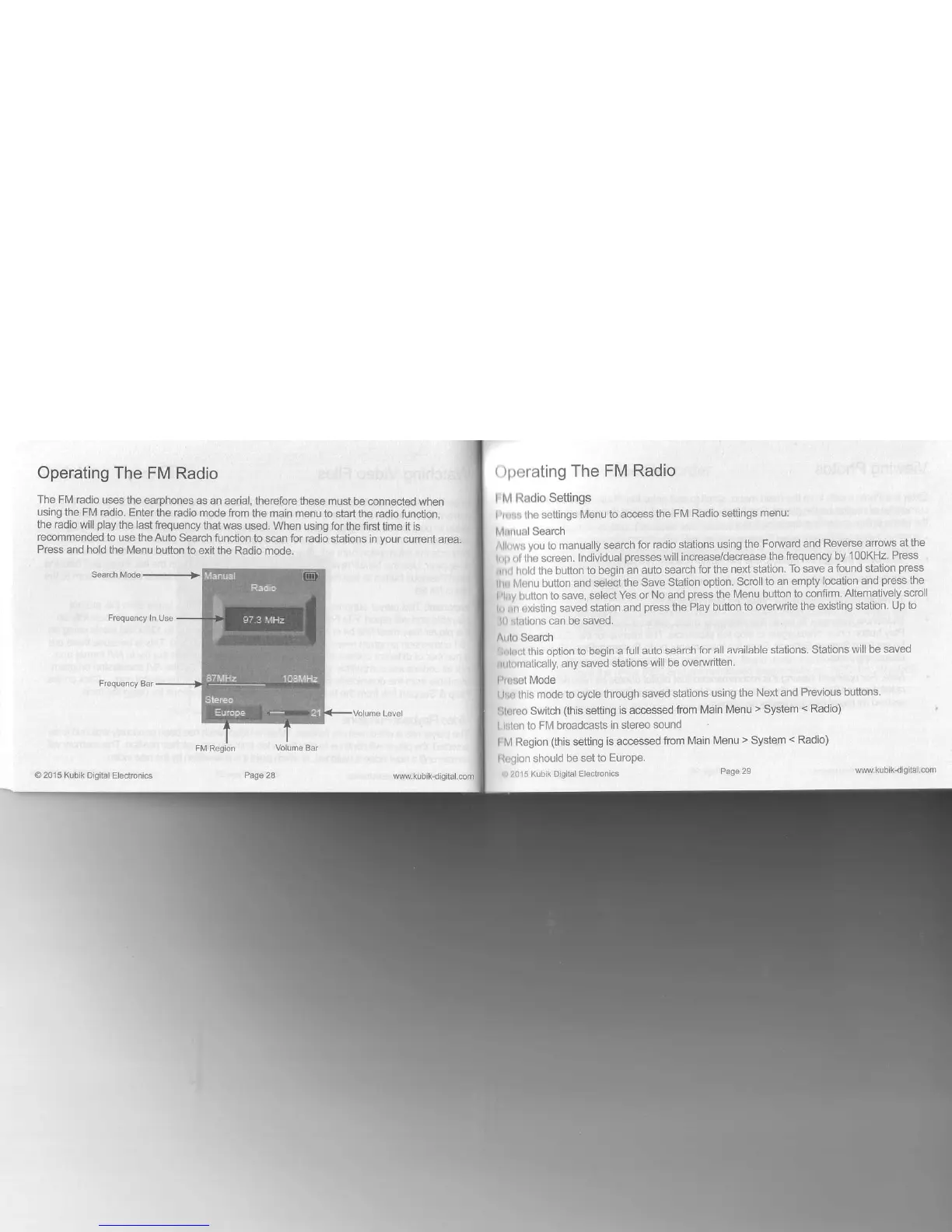 kubik Evo - Operating the FM Radio; FM Radio Settings
