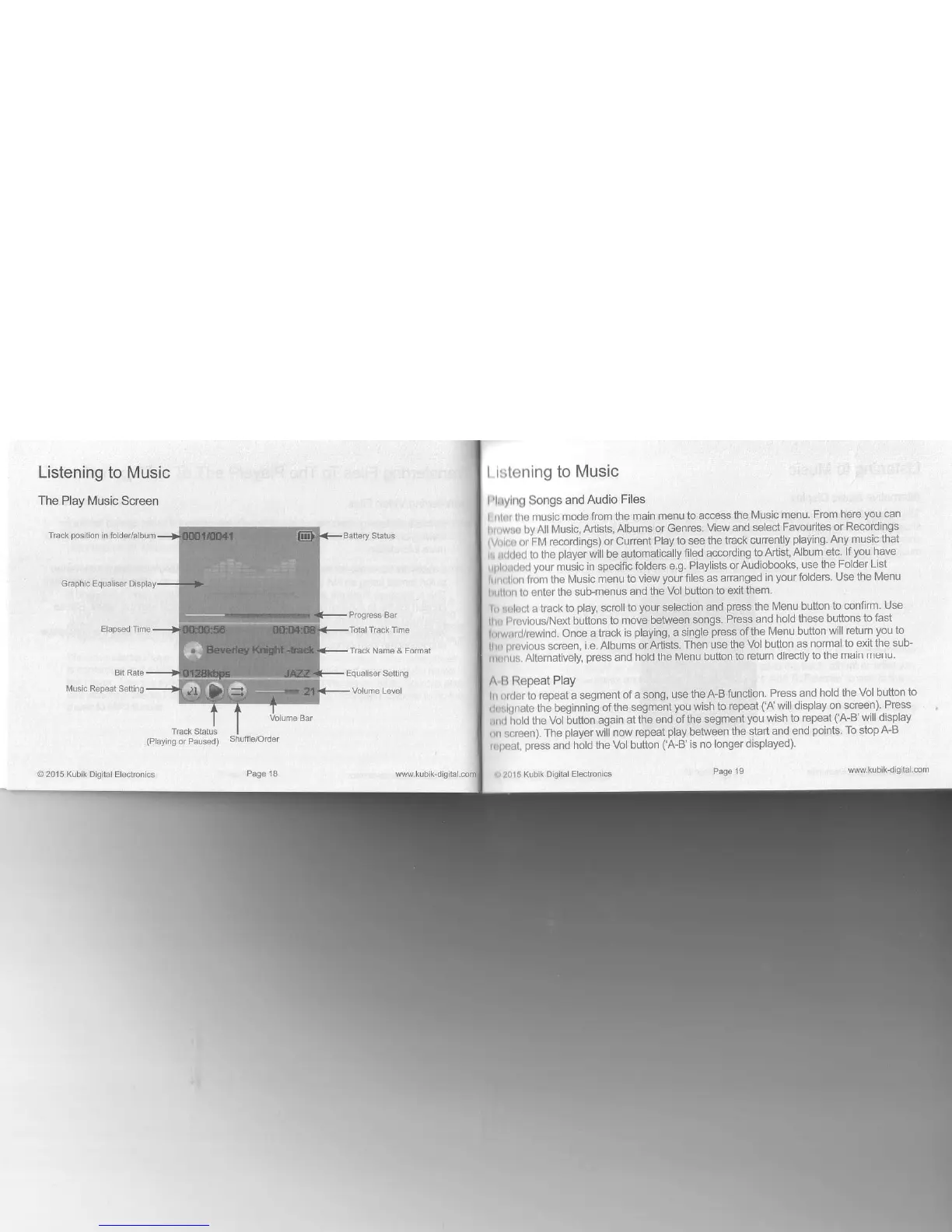 kubik Evo - Listening to Music; The Play Music Screen; Playing Songs and Audio Files; A-B Repeat Play