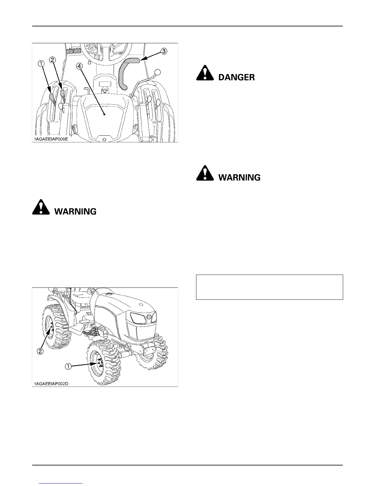 A Never operate tractor with a loose rim, wheel,