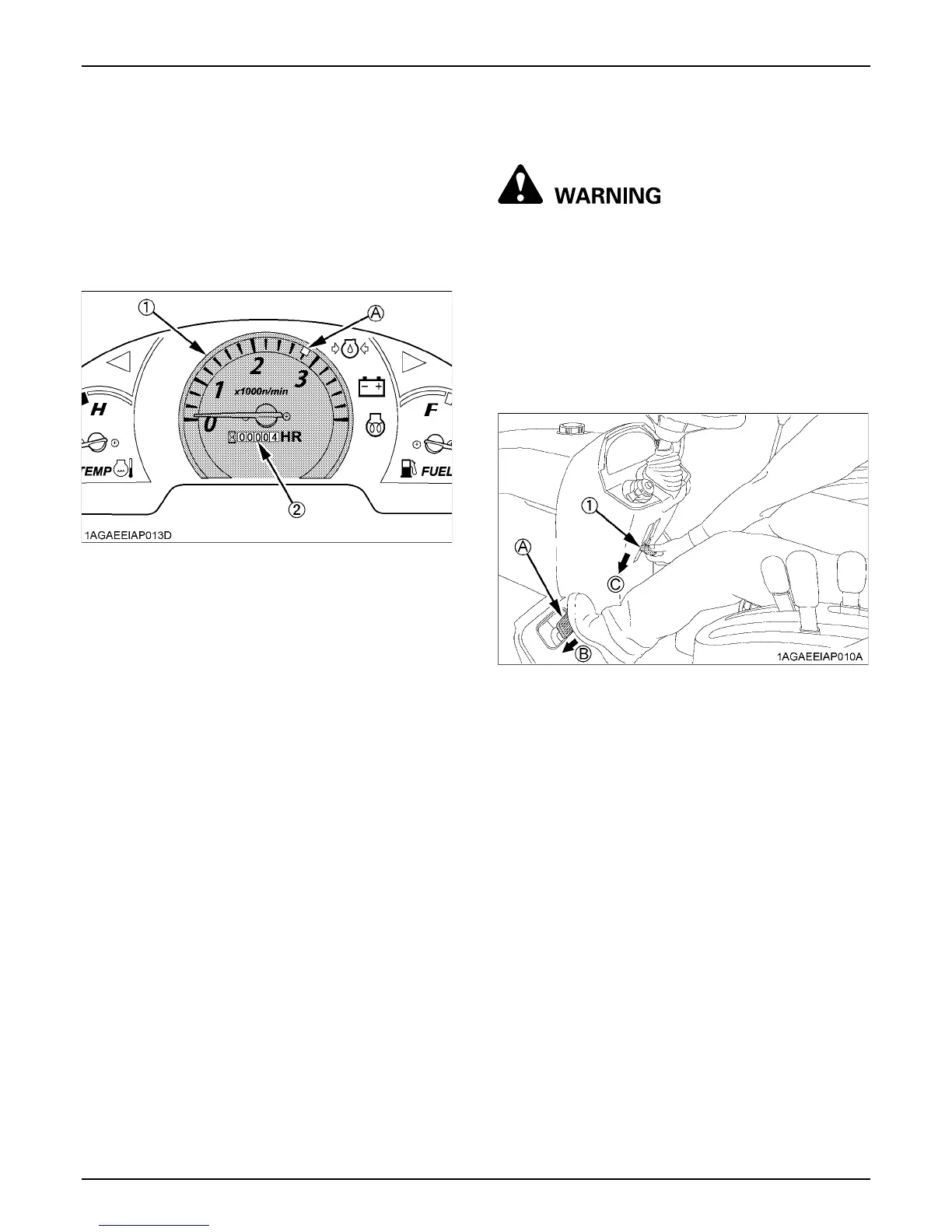 1. The tachometer indicates the engine speed and the