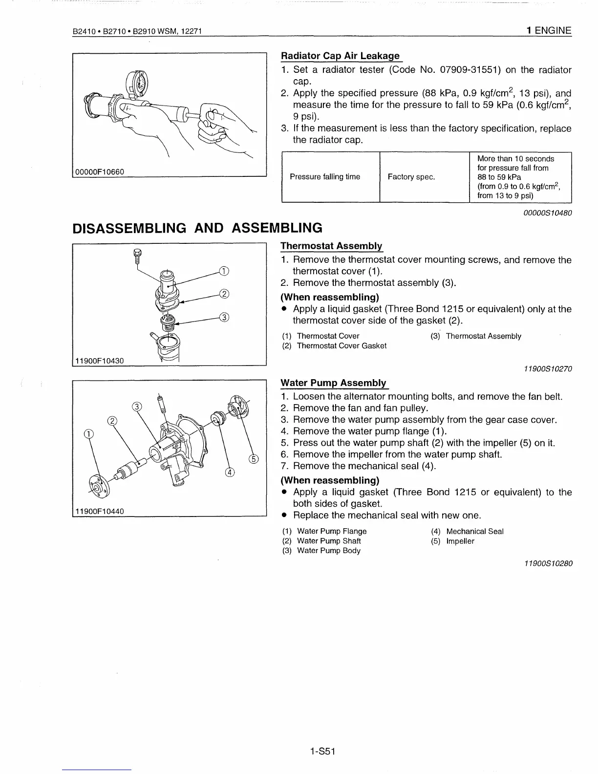 • Apply a liquid gasket (Three Bond 1215 or equivalent) to the