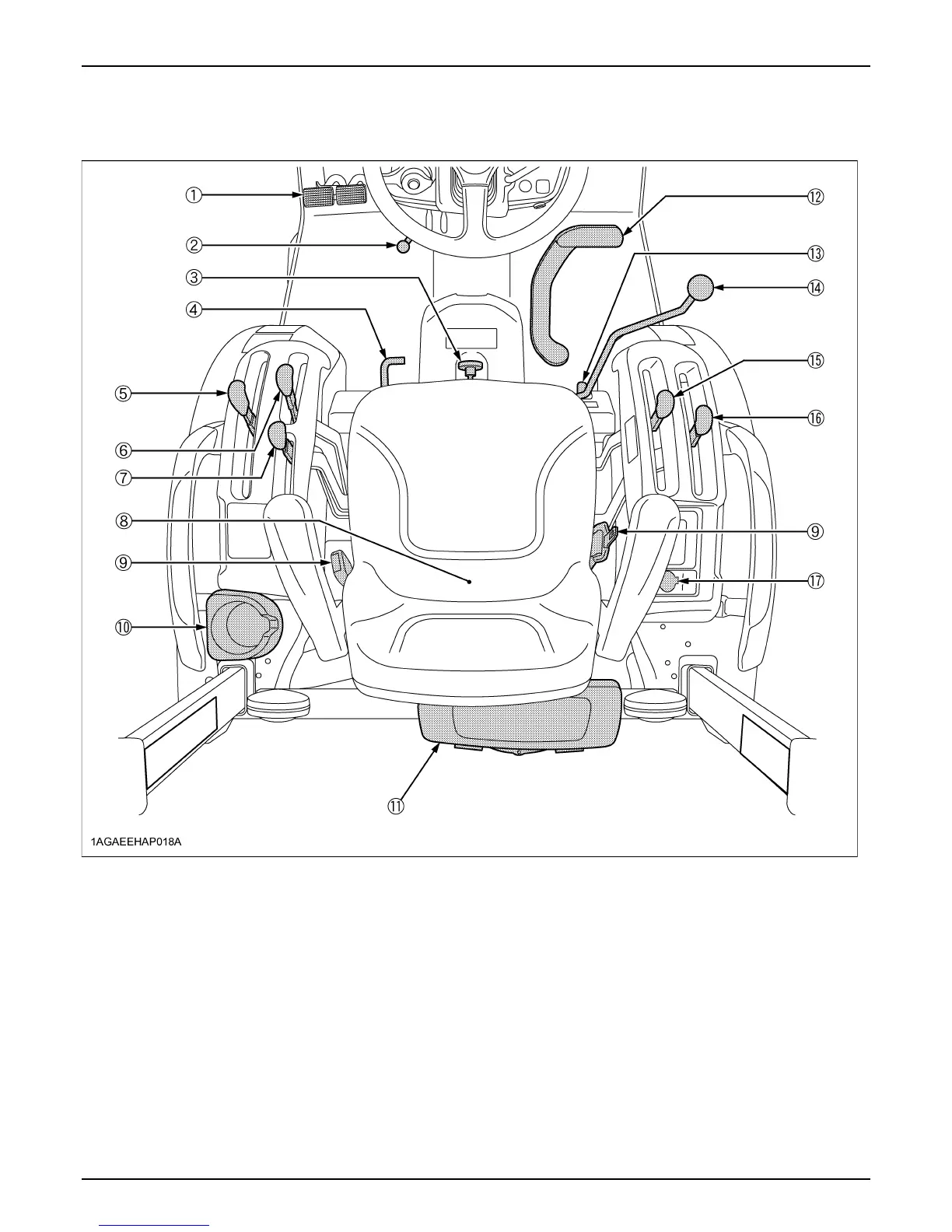 (8) Operator's seat............................................... 23 (16) Hydraulic control lever [B3150SU Only] ...... 50
