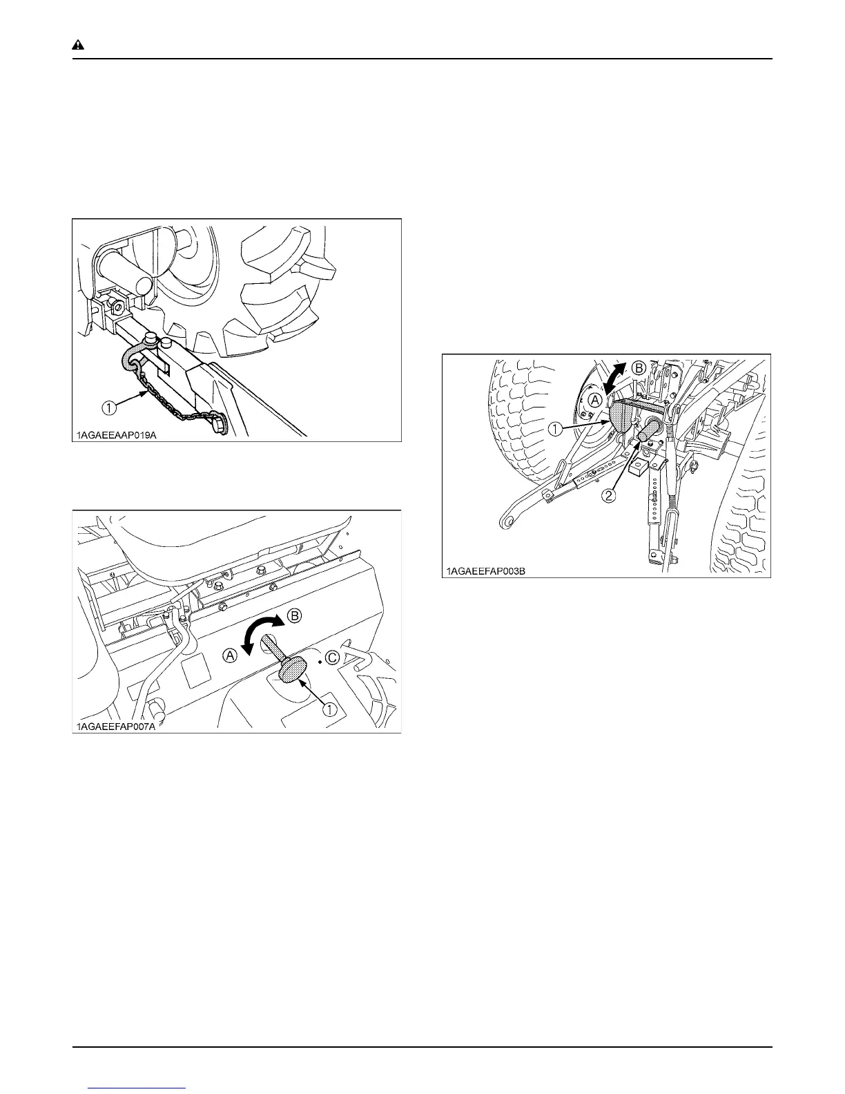(1) 3-point hitch lowering speed knob (A) "FAST"