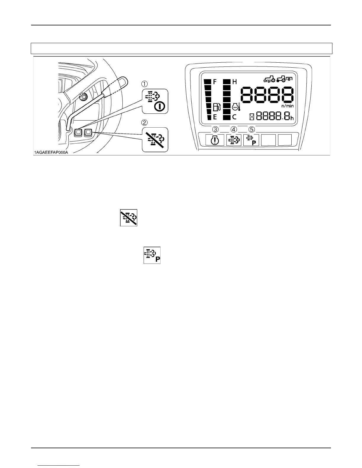 Move the tractor to a safe place and activates the DPF muffler. Follow the "Operating Procedure for Parked