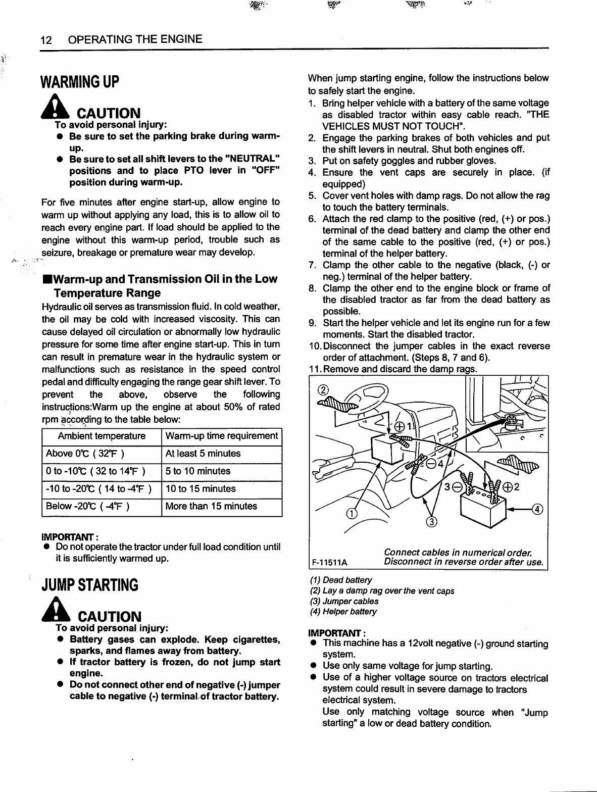 • This machine has a 12volt negative(-) ground starting