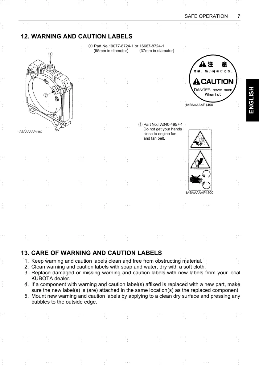 13. CARE OF WARNING AND CAUTION LABELS