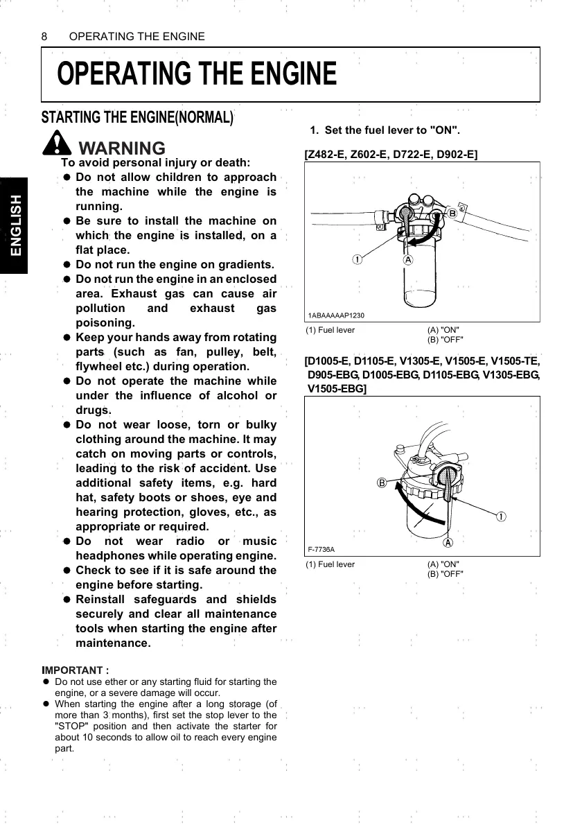 [D1005-E, D1105-E, V1305-E, V1505-E, V1505-TE,