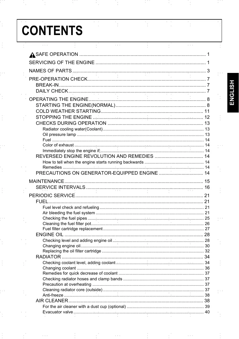 Radiator cooling water(Coolant) ..................................................................................... 13