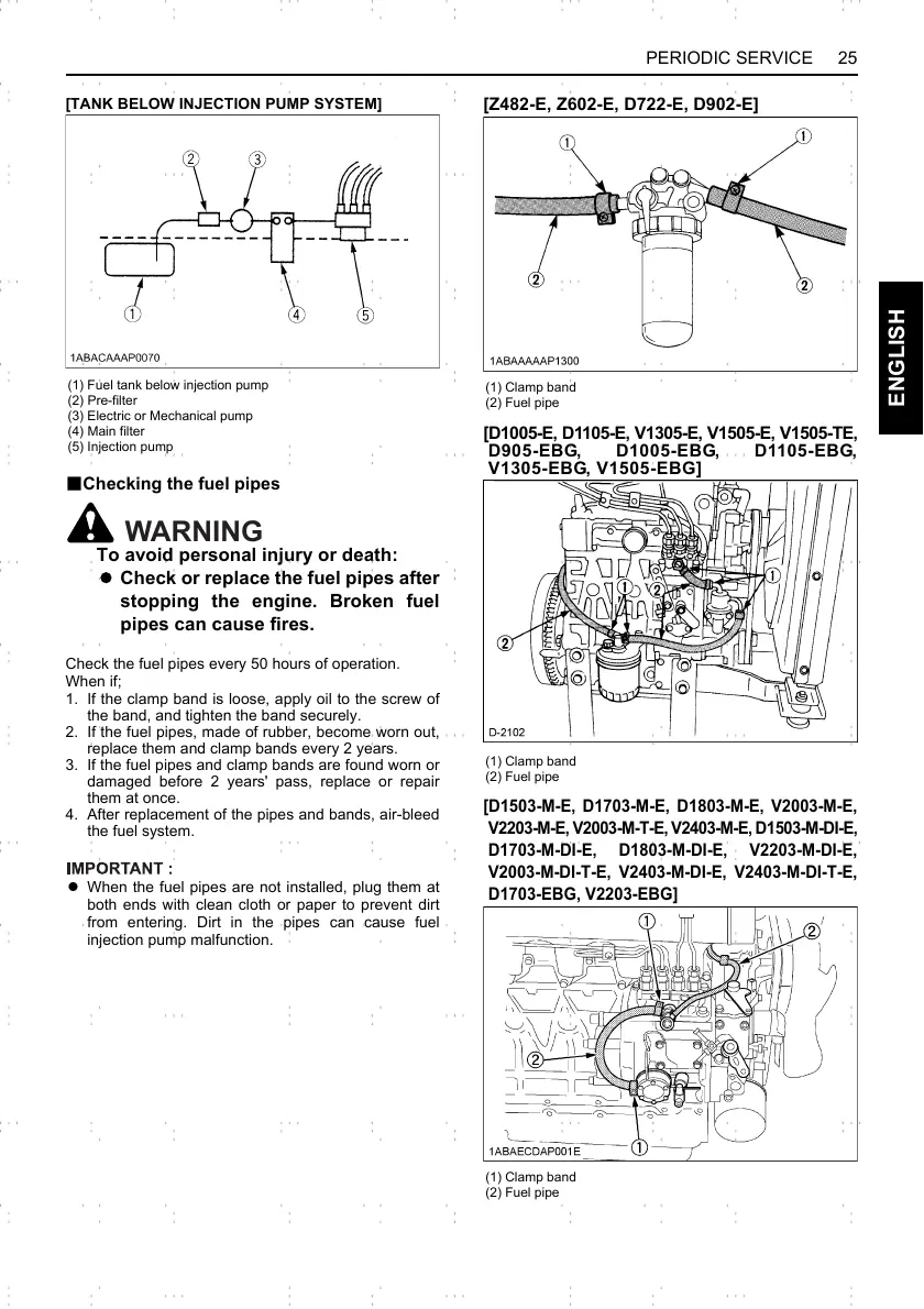 3. If the fuel pipes and clamp bands are found worn or
