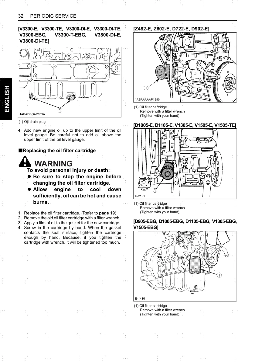 1. Replace the oil filter cartridge. (Refer to page 19)