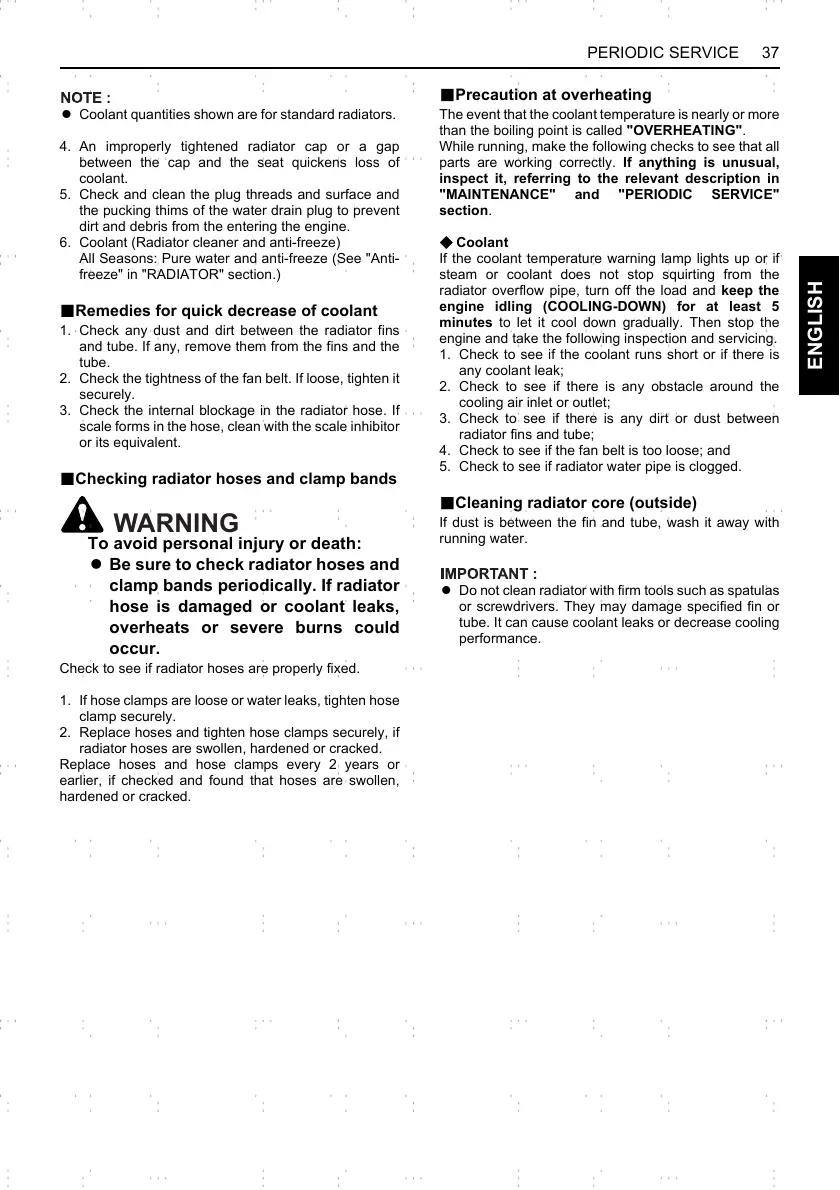 clamp bands periodically. If radiator