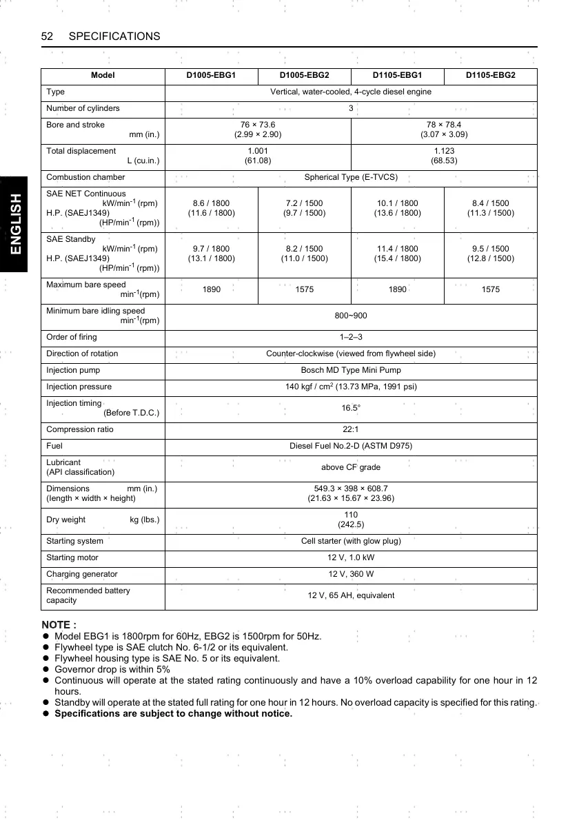 52 SPECIFICATIONS