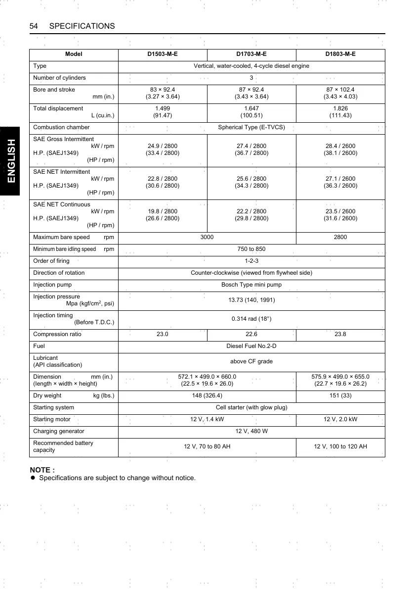 54 SPECIFICATIONS