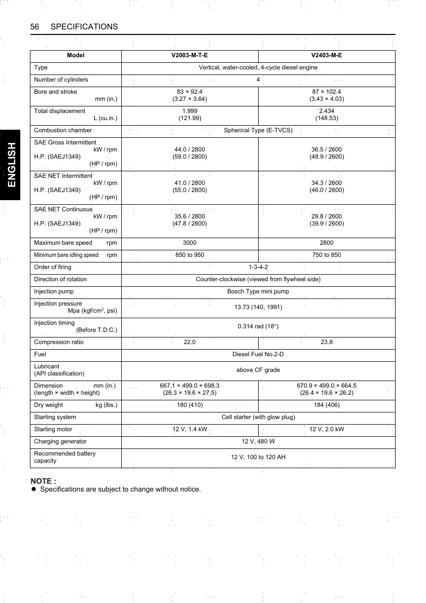 56 SPECIFICATIONS