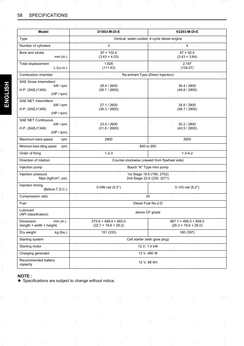 58 SPECIFICATIONS