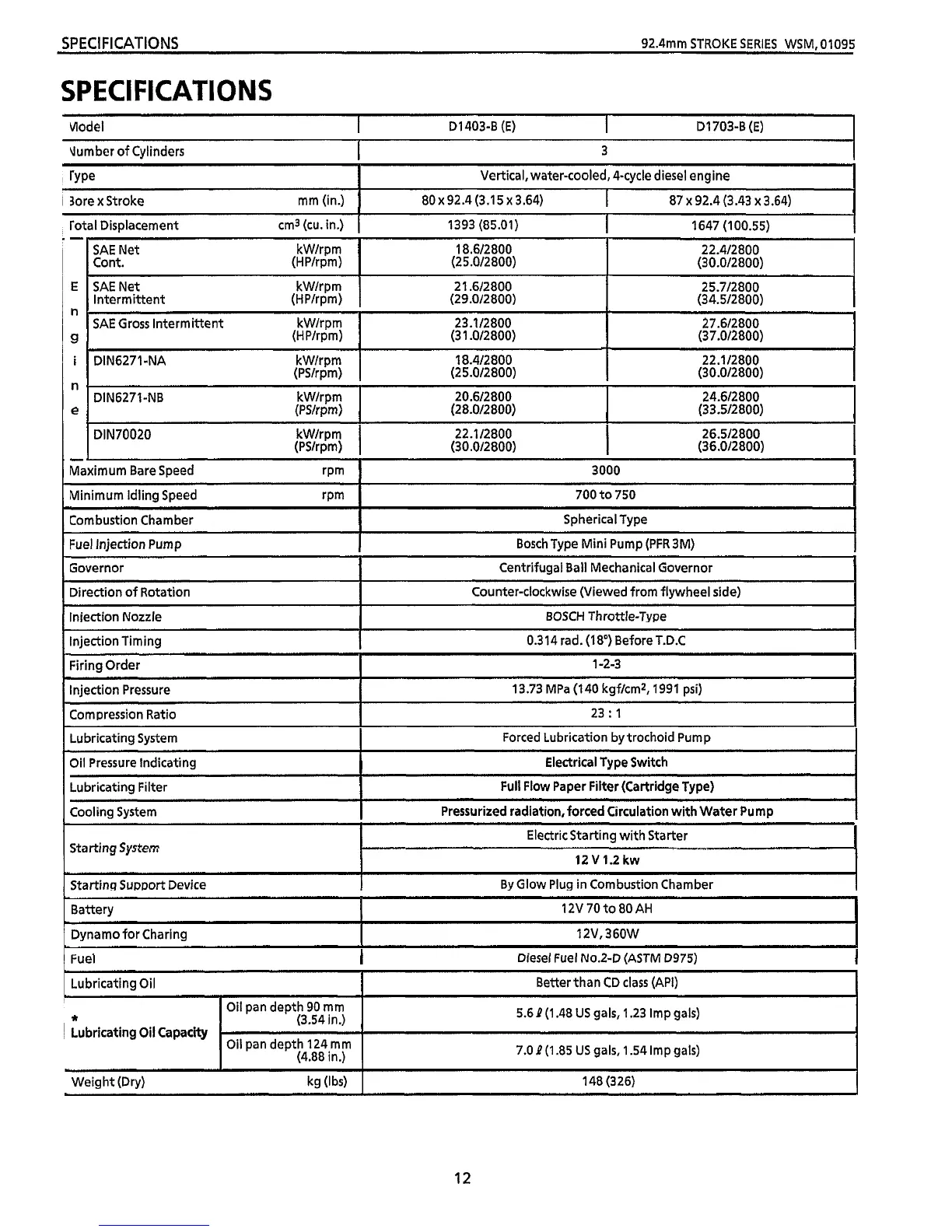 Lubricating Oil Capacity