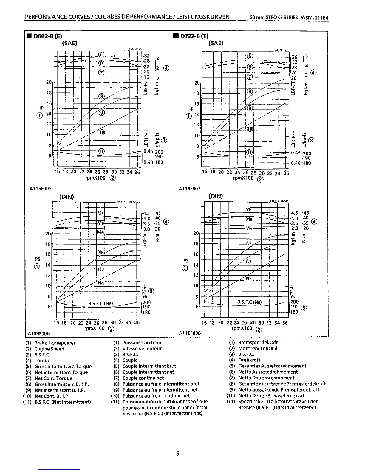 Brake Horsepower (1) Puissance au frein