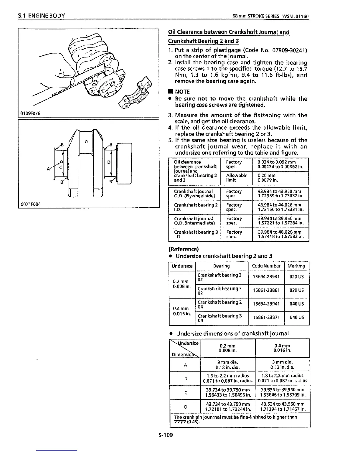 Undersize dimensions of crankshaft journal