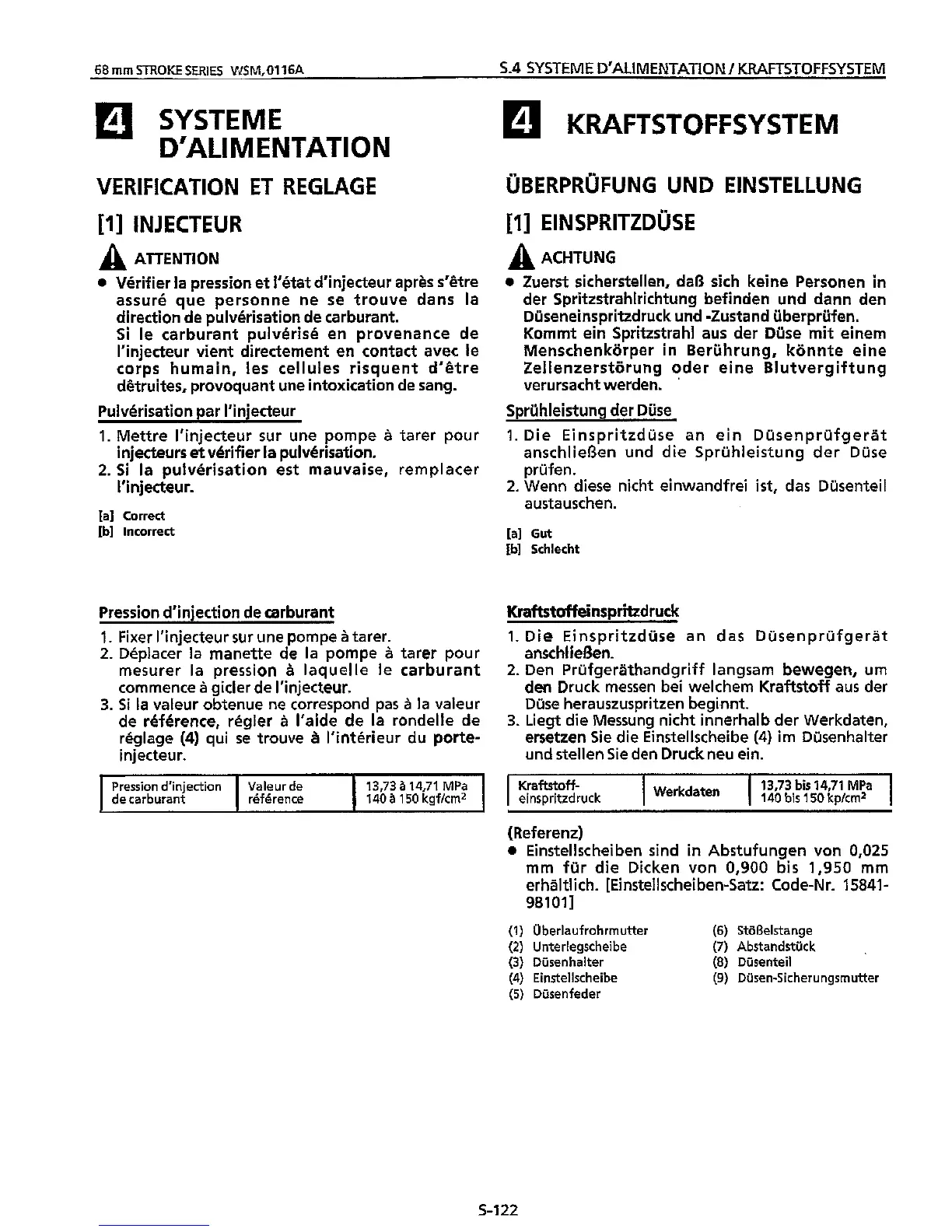 Verifier la pression et I'ktat d'injecteur apres s'btre