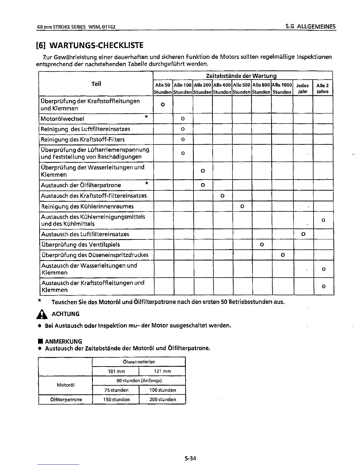 Austausch der Zeitabstande der Motorol und Olfilterpatrone.