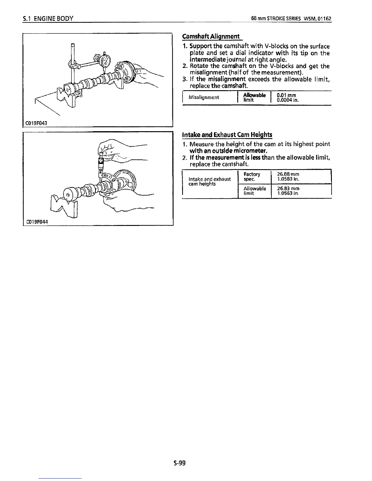 Rotate the camshaft on the V-blocks and get the