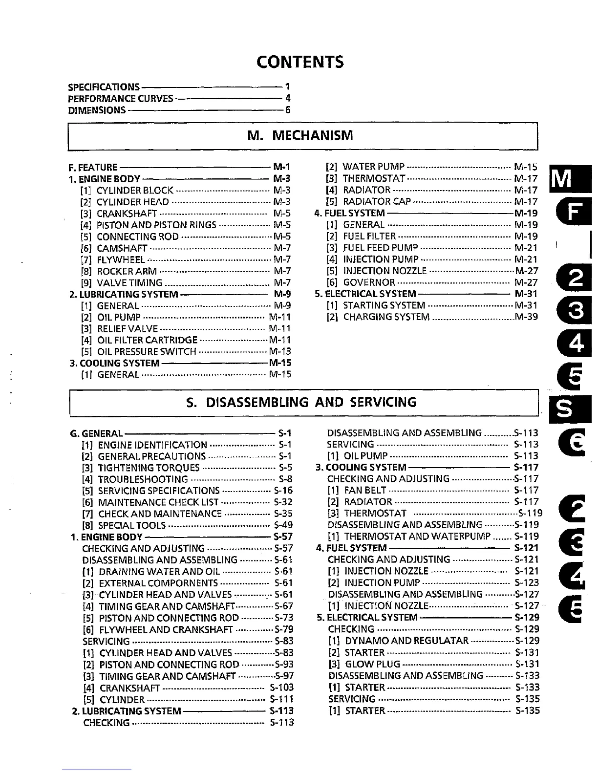 Kubota D722-E - Table of Contents
