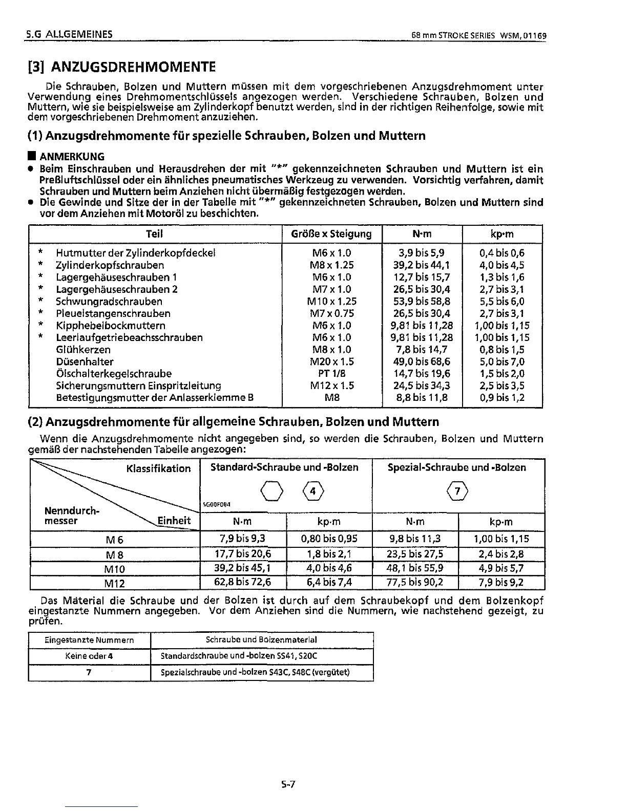Anzugsdrehmomente fur spezielle Schrauben, Bolzen und Muttern