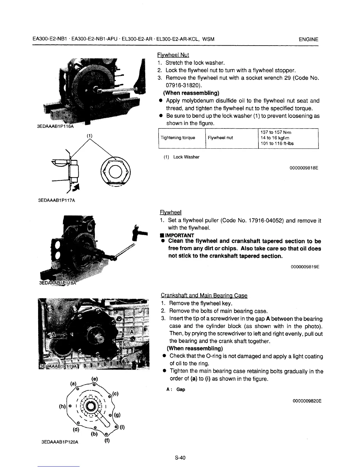 Kubota EA300-E2-NB1 - Flywheel Nut; Crankshaft and Main Bearing Case
