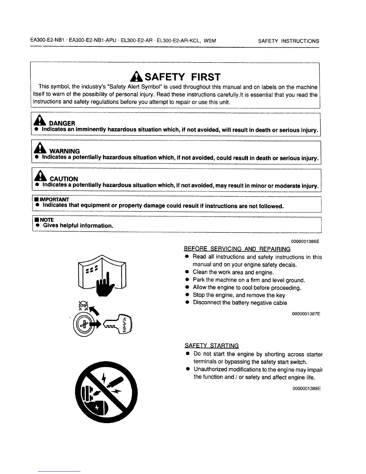 Kubota EA300-E2-NB1 - SAFETY INSTRUCTIONS; Safety Symbol Explanation; Safety Alert Levels