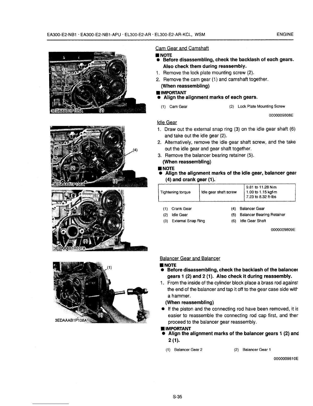 Kubota EA300-E2-NB1 - Cam Gear and Camshaft; Idle Gear; Balancer Gear and Balancer