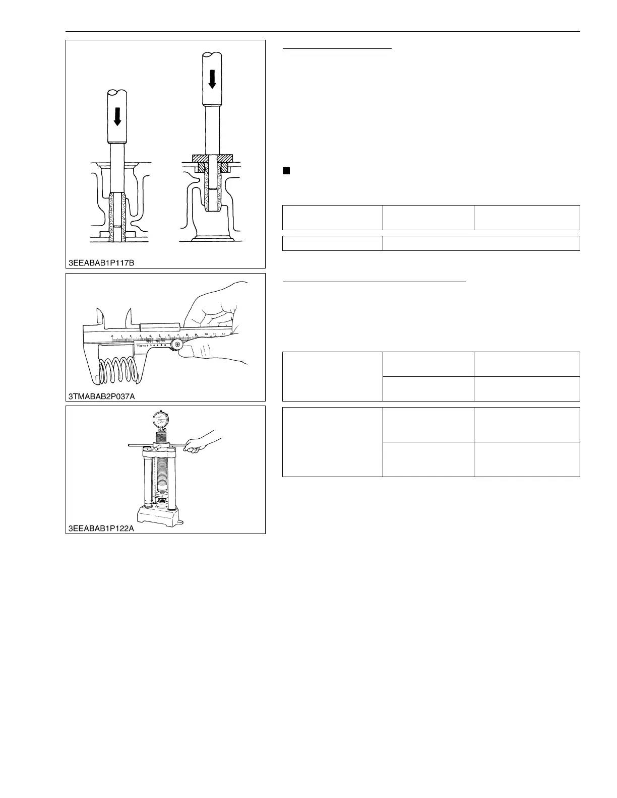 1. Press out valve guide with a valve guide replacing tool.