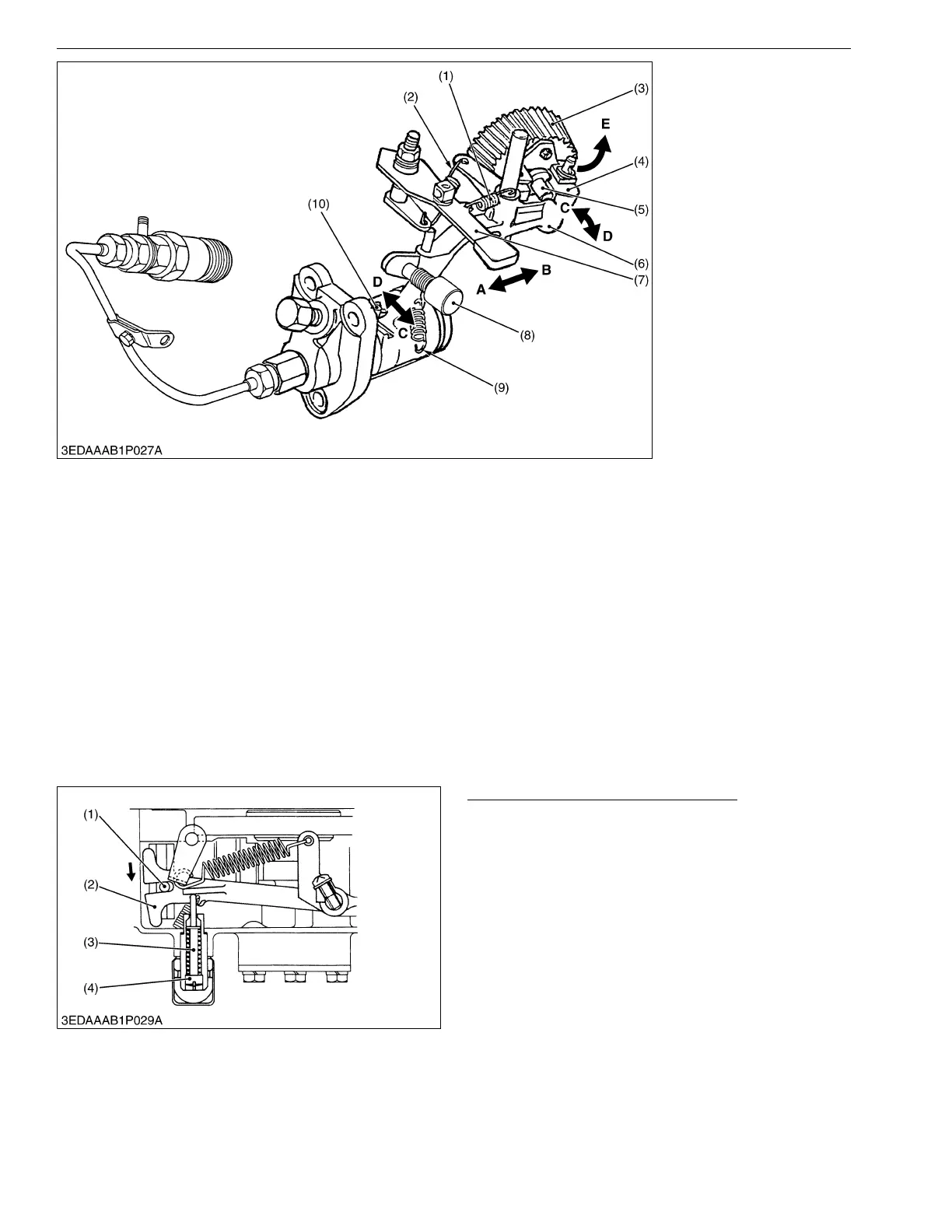 lever pin to move the governor lever (6) in direction "D", thus the control rack (10) is set to the stop position (No fuel