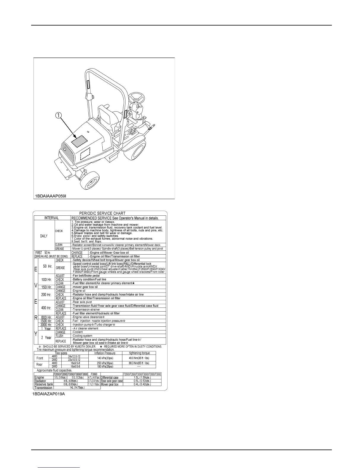 Kubota F2890 - Periodic Service Chart Label