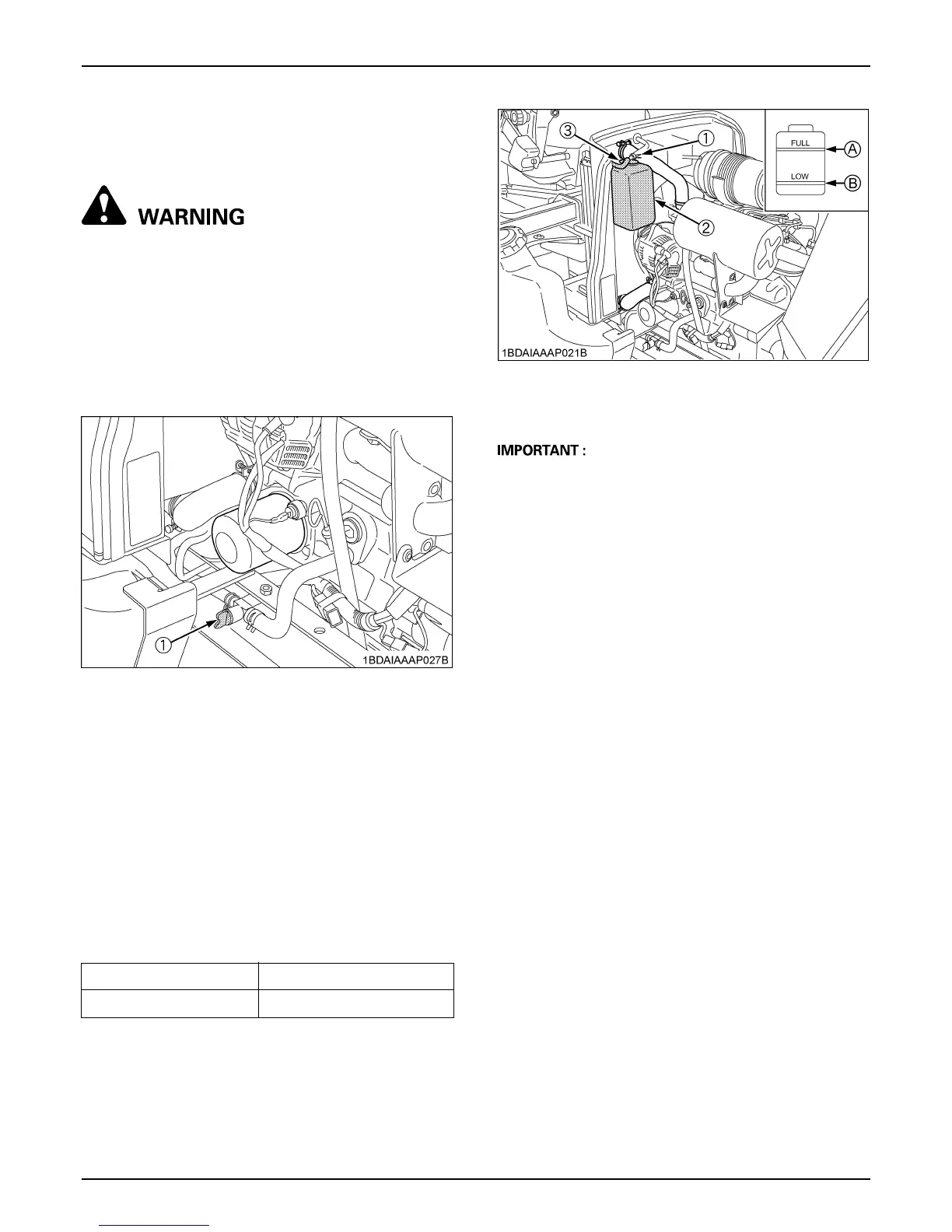 A Do not start engine without coolant.