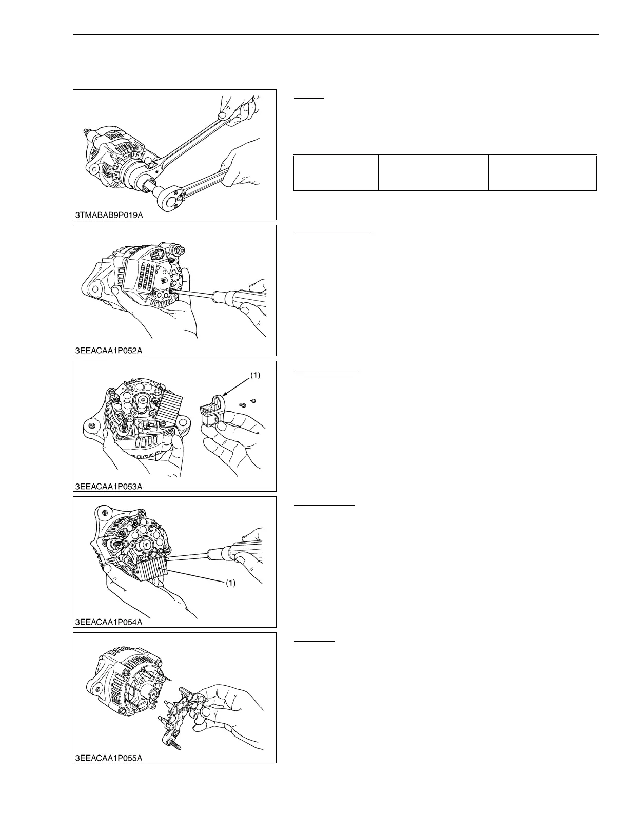1. Remove the four screws holding the rectifier(1) and the stator