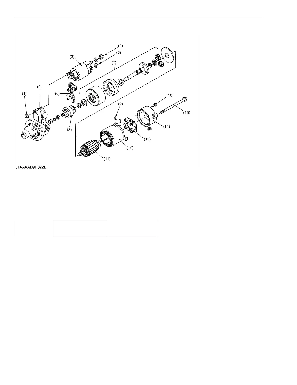 3. Remove the through bolts (15) and mounting screw (10), and remove the rear end frame (14).