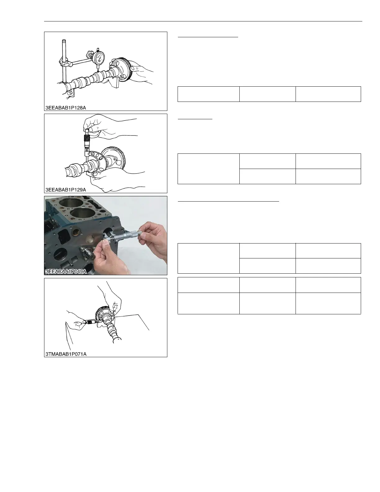 1. Measure the camshaft journal O.D. with an outside micrometer.