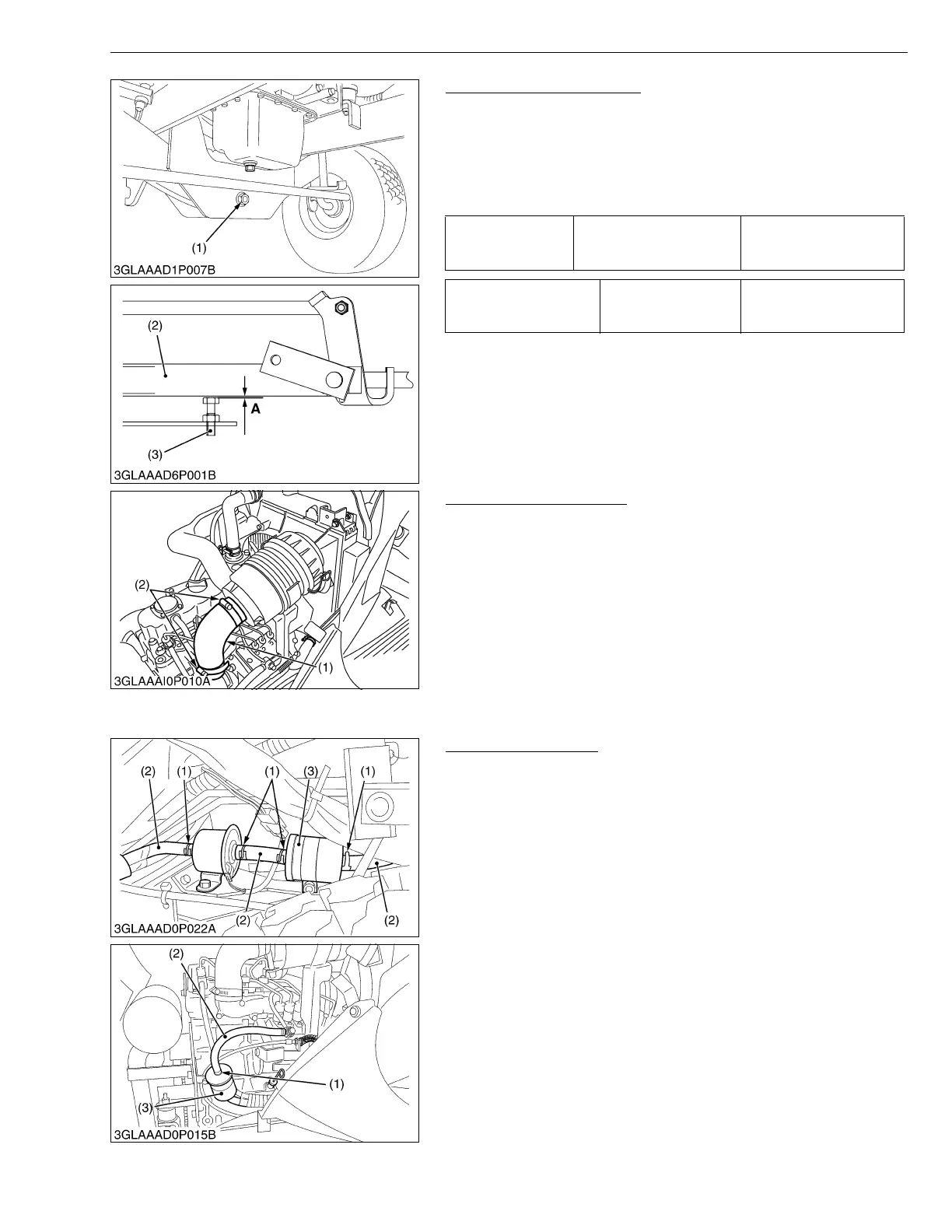 3. Measure the clearance between the front axle frame (2) and anti-