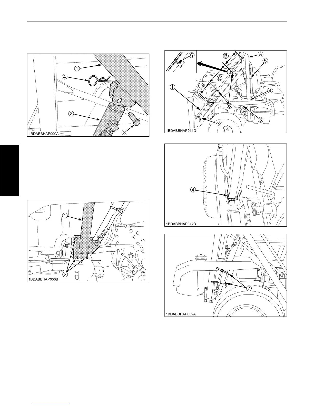Einraststift (4) am unteren Hubarm (1) befestigen.