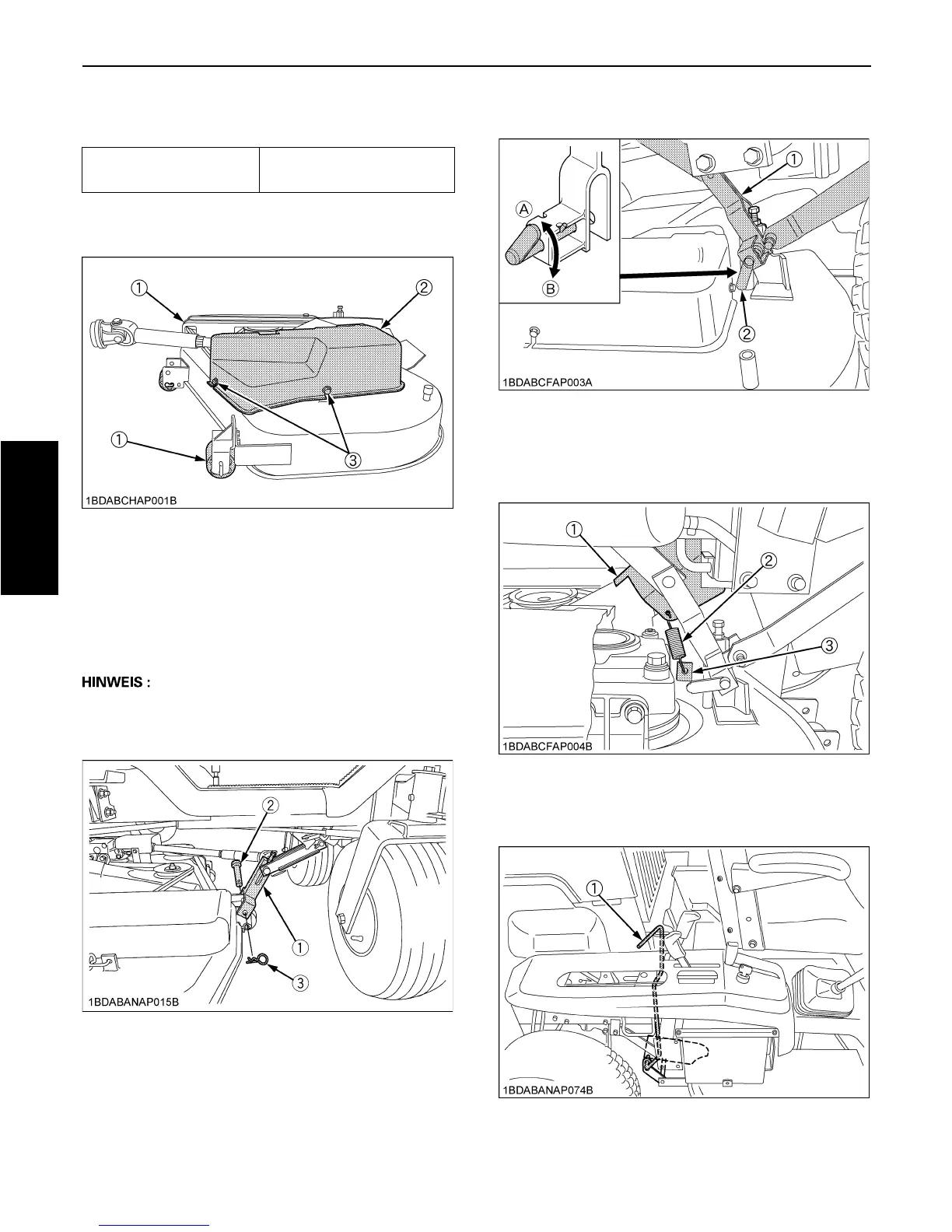 hängt, in die Strebe (3) des Mäherdecks einhaken.