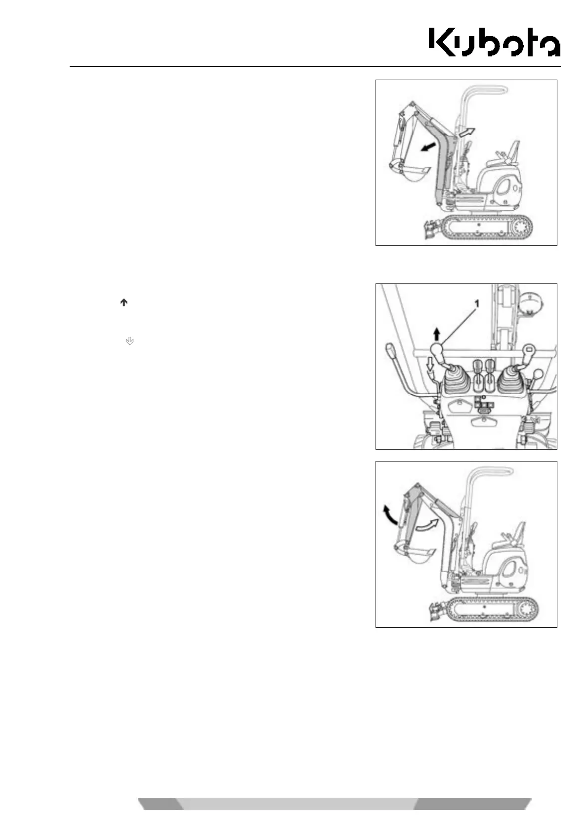To dump the arm, push the left control lever (1) forward