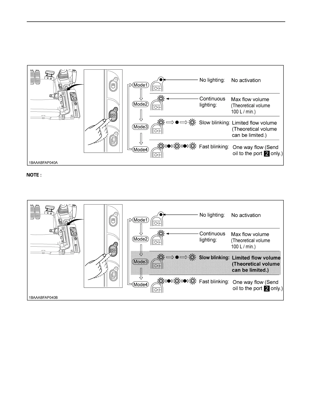 Each time the service port activation switch is pushed, the action mode changes from 1 through 4.