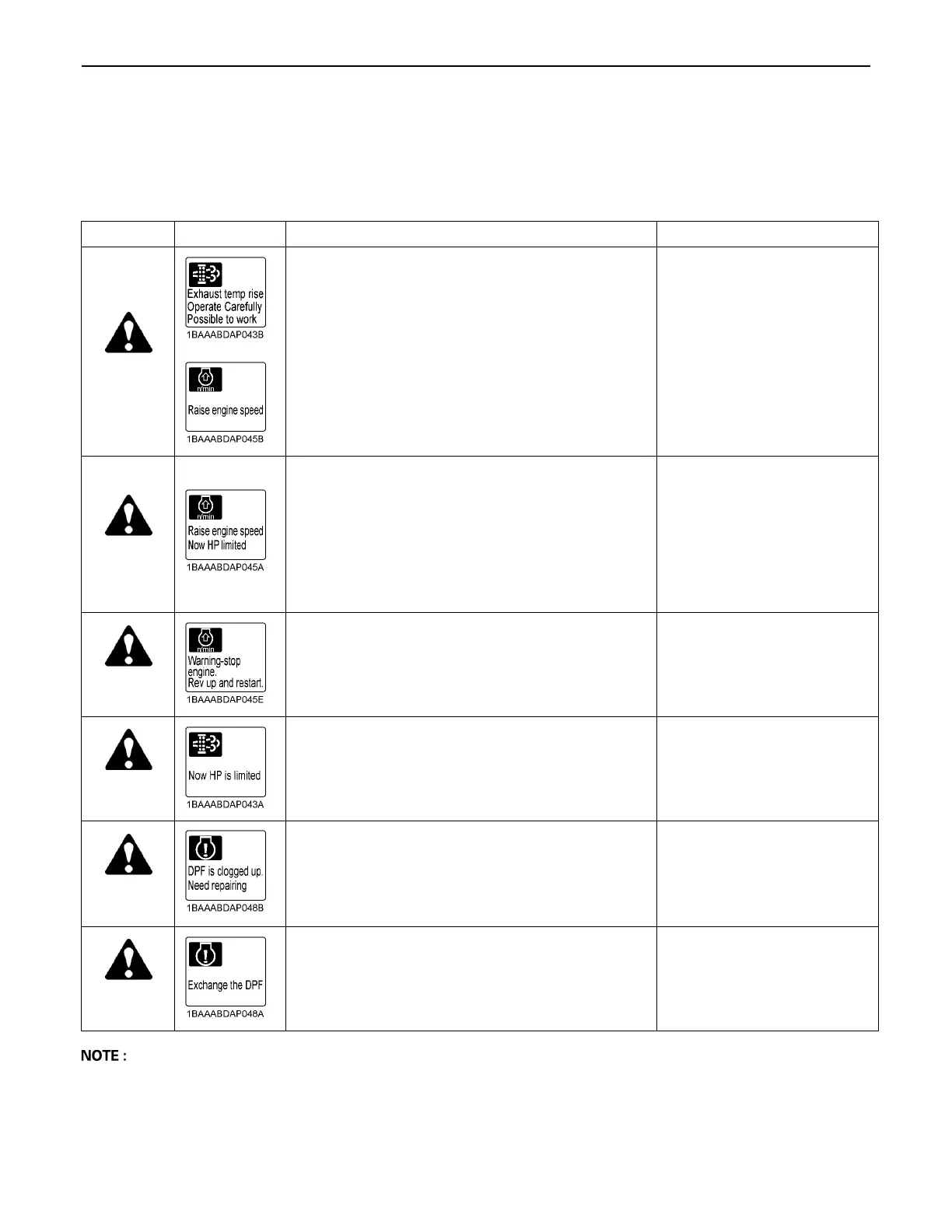 (DPF-regenerate) these matters. In the regeneration, buzzer sounds and warning light blink and display shows messages. All operation