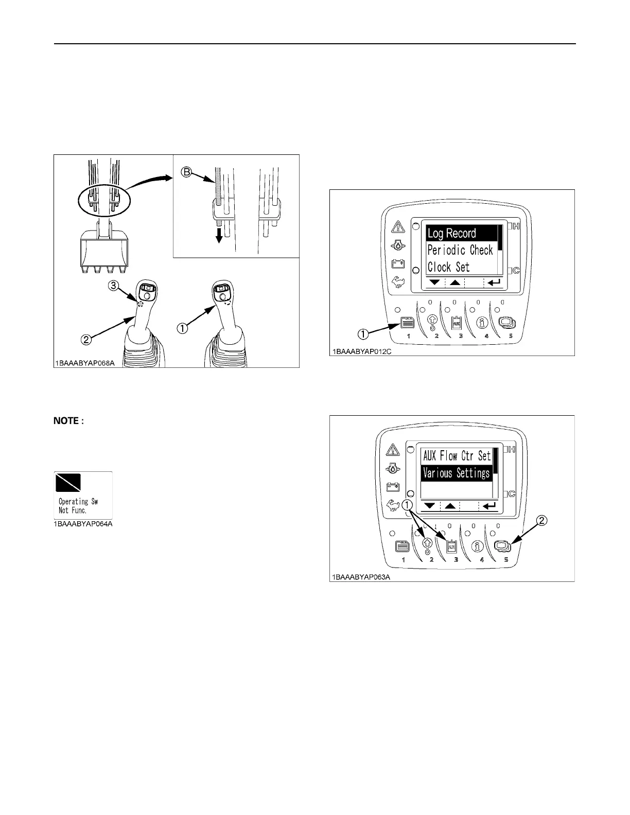 2. Press the switch 2 or 3 to select "AUX Flow Ctrl Set",