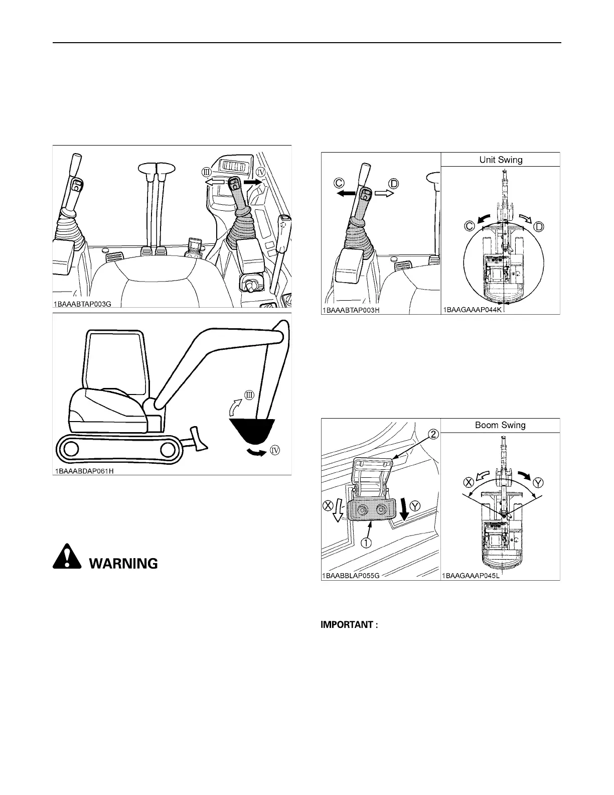 A Be sure to lock the boom swing pedal when the
