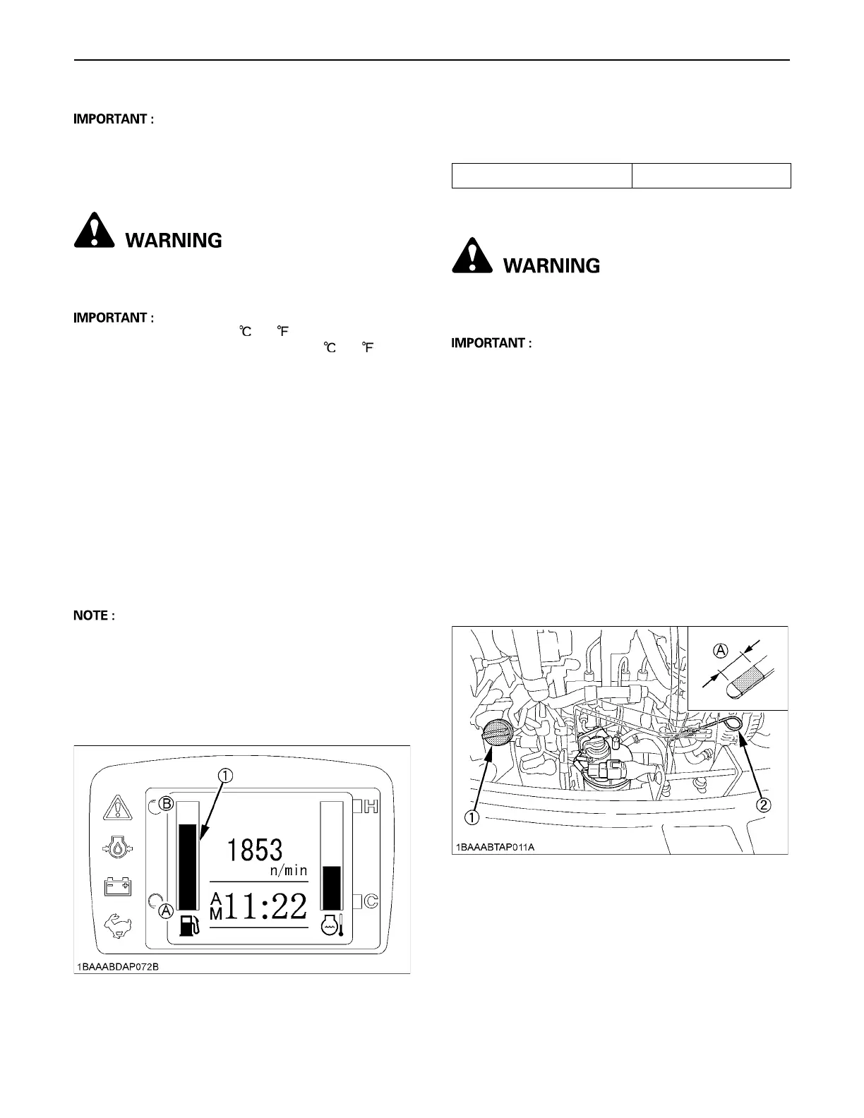 minutes, then check oil level. (Excavator must be on